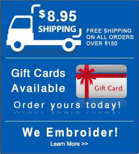 '}}" alt="We Embroider! Learn More" width="285" height="317" /> Free Shipping on all orders over $200 Gift Cards Available - order yours today! We Embroider! - Learn more
